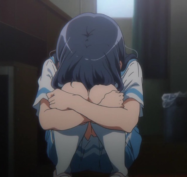 教室の隅で体育座りする